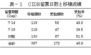 | [成果情報名] | ウシ胚移植後の膣内留置型黄体ホルモン製剤挿入が受胎に及ぼす影響 |