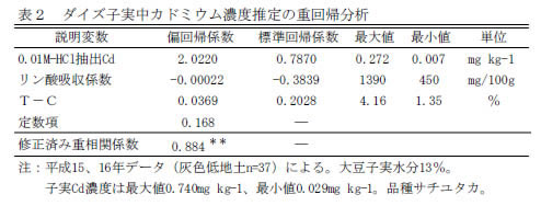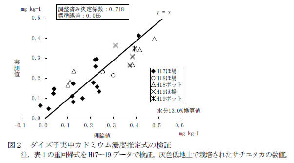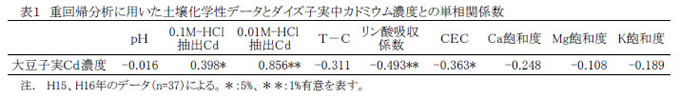 | [成果情報名] | 灰色低地土における土壌化学性分析値を用いたダイズ子実カドミウム濃度の推定法 |