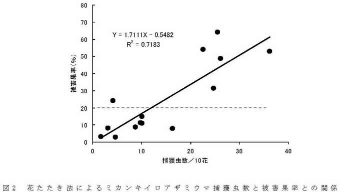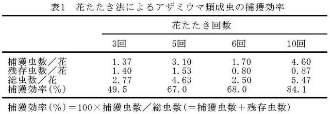 | [成果情報名] | 花たたき法によるナスのアザミウマ類成虫の生息密度推定および被害解析 |