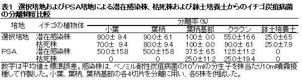 | [成果情報名] | 選択培地によるイチゴ炭疽病菌の潜在感染株および培養土における動態解析 |