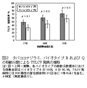 | [成果情報名] | タバココナジラミバイオタイプB、QによるTYLCVの感染拡大能力の比較 |