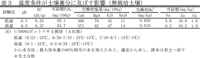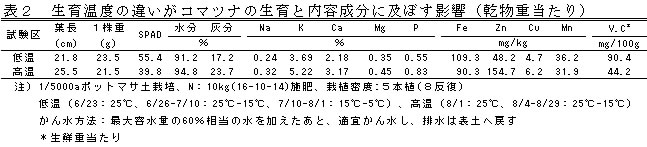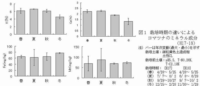 | [成果情報名] | 栽培環境がコマツナ軟弱野菜のミネラル成分に及ぼす影響 |