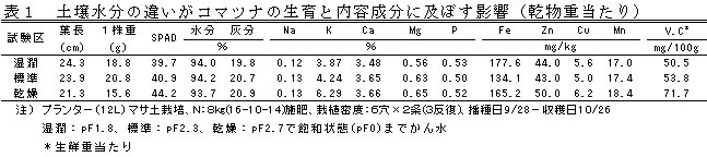 | [キーワード] | コマツナ、ミネラル、含有率、季節、土壌水分、温度 |